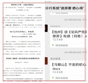 为避免理论学习“学过就忘、不求甚解”,南京分行连续两年利用网络微信群在辖内开展“读原著 晒心得”活动,每年为干部职工指定阅读书目,干部职工通过网络微信群分享自己读原著的心得体会,已累计分享心得体会1120篇。从阅读书目来看,主要为《共产党宣言》《习近平谈治国理政》(第一卷、第二卷)《之江新语》《摆脱贫困》《习近平关于“不忘初心、牢记使命”重要论述摘编》《论共产党员的修养》等经典著作。从分享形式来看,干部职工可以通过音频、文字等多种形式分享自己的读书心得,分享心得侧重短小精悍、细水长流,做到“学习日日新、心得天天谈、兴趣渐渐增”,让干部职工在日积月累中增加阅读兴趣、提升思想高度。从激励机制来看,分行按月对读书心得体会文章进行整理、筛选并制作成美篇,以“南银宣说”为平台进行推介分享,优秀心得体会文章既有中支的,也有县(市)支行的,既有宣传条线的,也有业务部门的,通过示范作用,带动广大干部职工爱学习、想学习,营造理论学习的浓厚氛围。