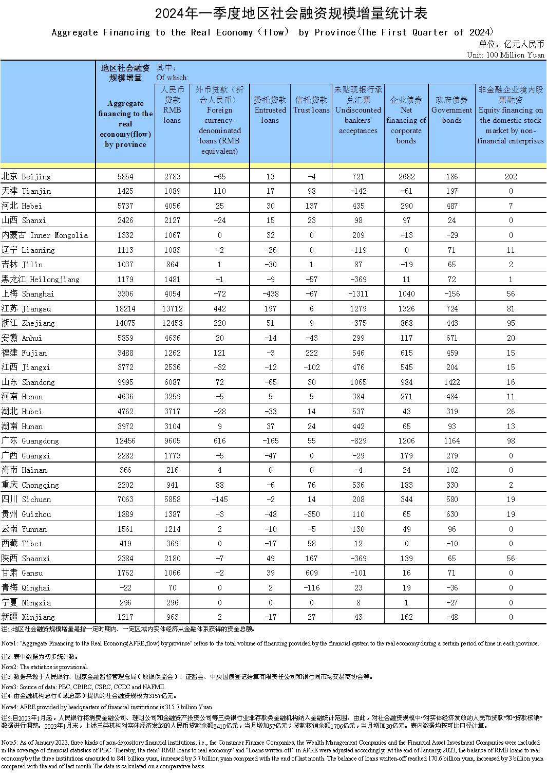 2024年一季度地区社会融资规模增量统计表