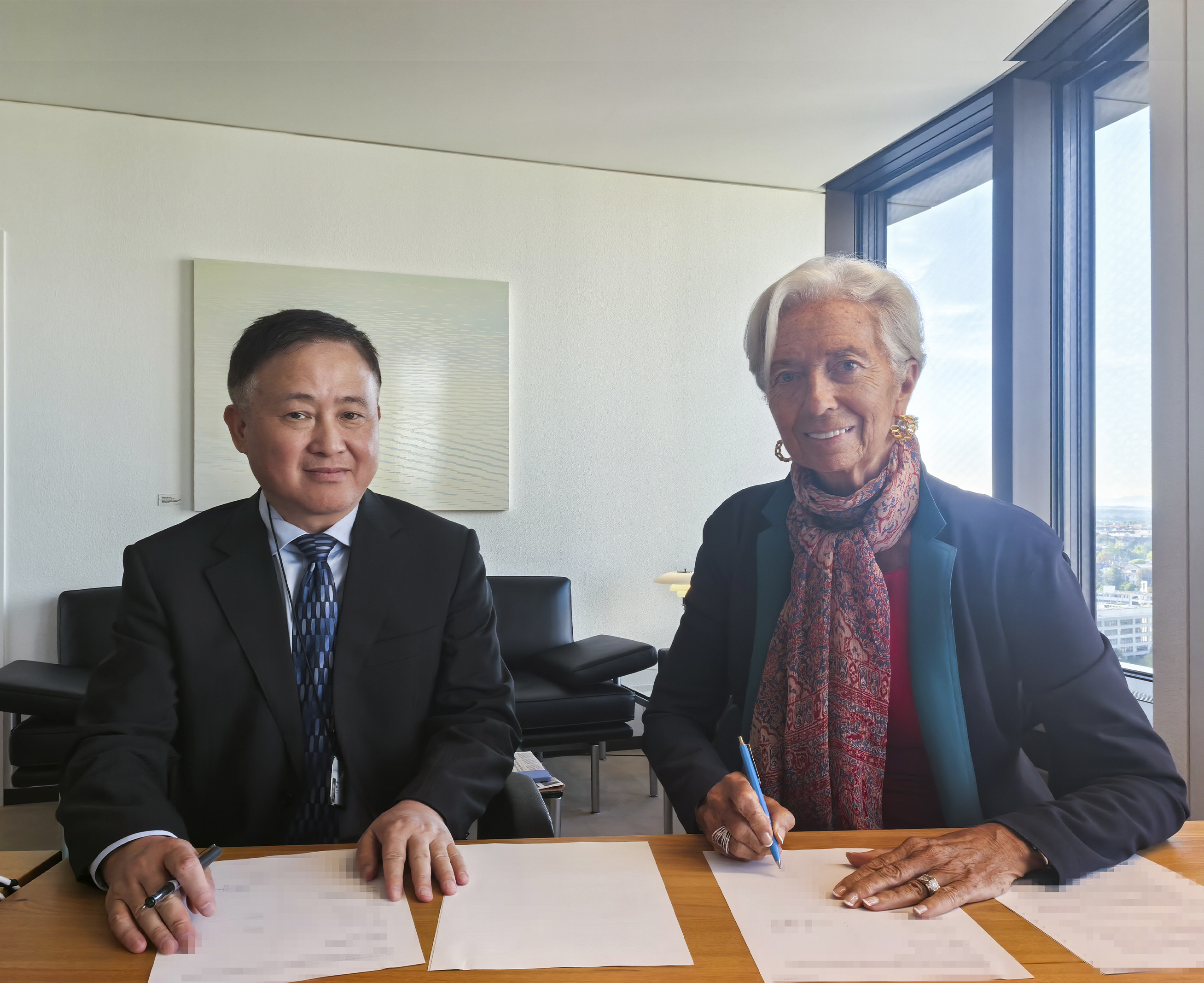 中国人民银行行长潘功胜与欧洲中央银行行长拉加德续签中欧双边本币互换协议