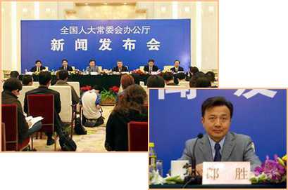 2006年10月31日,全国人大常委会办公厅在人民大会堂就《反洗钱法》颁布实施举行新闻发布会,全国人大常委会法工委刑法室主任郎胜介绍情况。