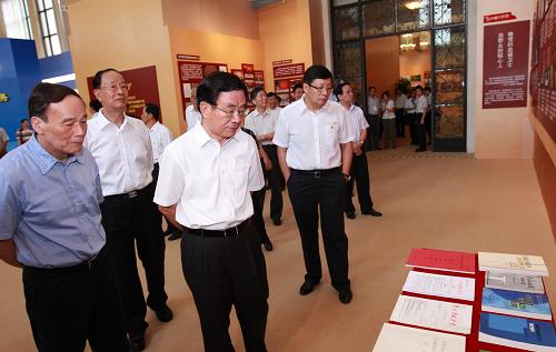 中共中央政治局委员、国务院副总理王岐山,中共中央书记处书记、中央纪委副书记何勇一同参观展览。
