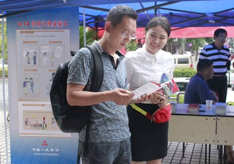 22.长沙中支征信管理处联合浦发银行长沙科大佳园社区支行,开展“6.14信用记录关爱日”征信知识进社区宣传活动。