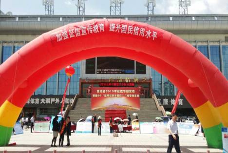 29.西宁中支在西门体育馆北门前举行“青海省2015年征信专题宣传暨第八个‘信用记录关爱日’广场宣传活动”,活动中除联动银行业金融机构外,还邀请了青海民族大学的志愿者参加。