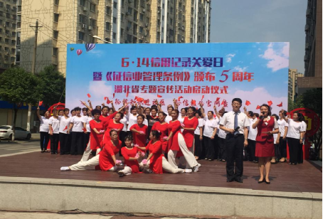 6.武汉分行在习近平总书记今年曾实地考察过的武汉市青和居社区隆重举行“6.14信用记录关爱日”暨《征信业管理条例》颁布五周年湖北省专题宣传活动启动仪式。