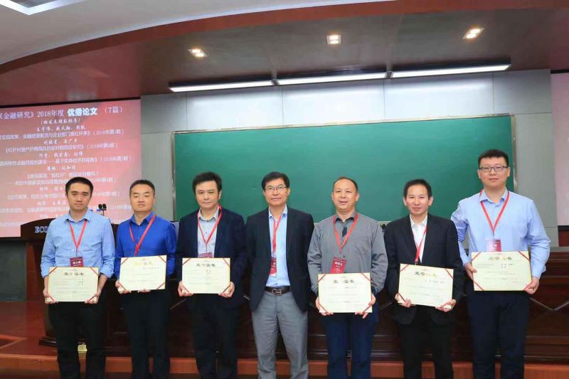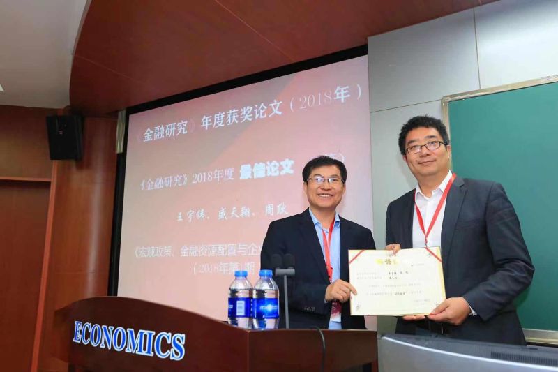 中国人民银行研究局王信局长为《金融研究》“2018年度优秀论文”获奖者颁奖