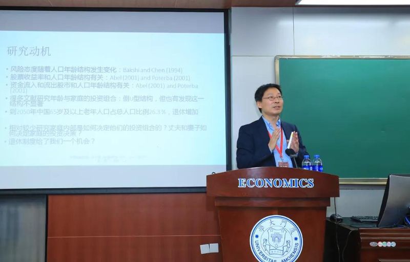 对外经济贸易大学吴卫星教授进行了题为“退休待遇、话语权与家庭投资组合调整”的演讲。吴教授表示,不同家庭关于投资决策的主体和风格不一致,导致研究结果也存在差异,而我国特有的退休制度可以帮助分析这一问题。吴教授指出,在中国,大多数妻子先于丈夫退休,且中国退休待遇在城乡和各单位之间不同。一般来讲,话语权衡量了夫妻双方的资源掌握程度,而退休制度设计改变了夫妻双方的话语权和资源掌握程度,妻子退休后话语权向丈夫转移,丈夫退休后话语权向妻子转移。行为金融学研究显示,在投资风格上,性别差异影响投资组合的风险水平,其中女性较男性更为保守。上述机制为分析我国家庭投资决策行为提供了新的视角。