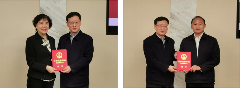 国务院参事室党组成员、副主任、金融研究中心决策委员会副主任张彦通为新聘研究员王志强、王宇颁发聘书并作了重要讲话。