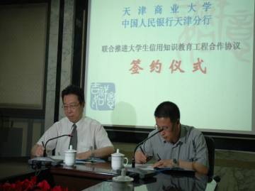 5月27日,天津分行与天津商业大学签订了《中国人民银行天津分行与天津商业大学联合推进大学生信用知识教育工程合作协议》,正式将征信知识作为天津商业大学的全校选修课程。
